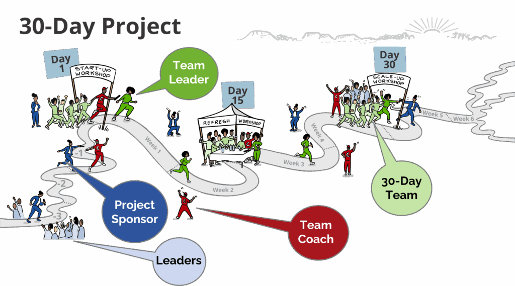The 30-Day Project team is smaller – 4-8 team members versus 8-12.