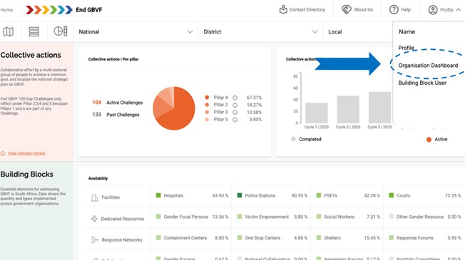 Hover over profile: Click on Organisational Dashboard